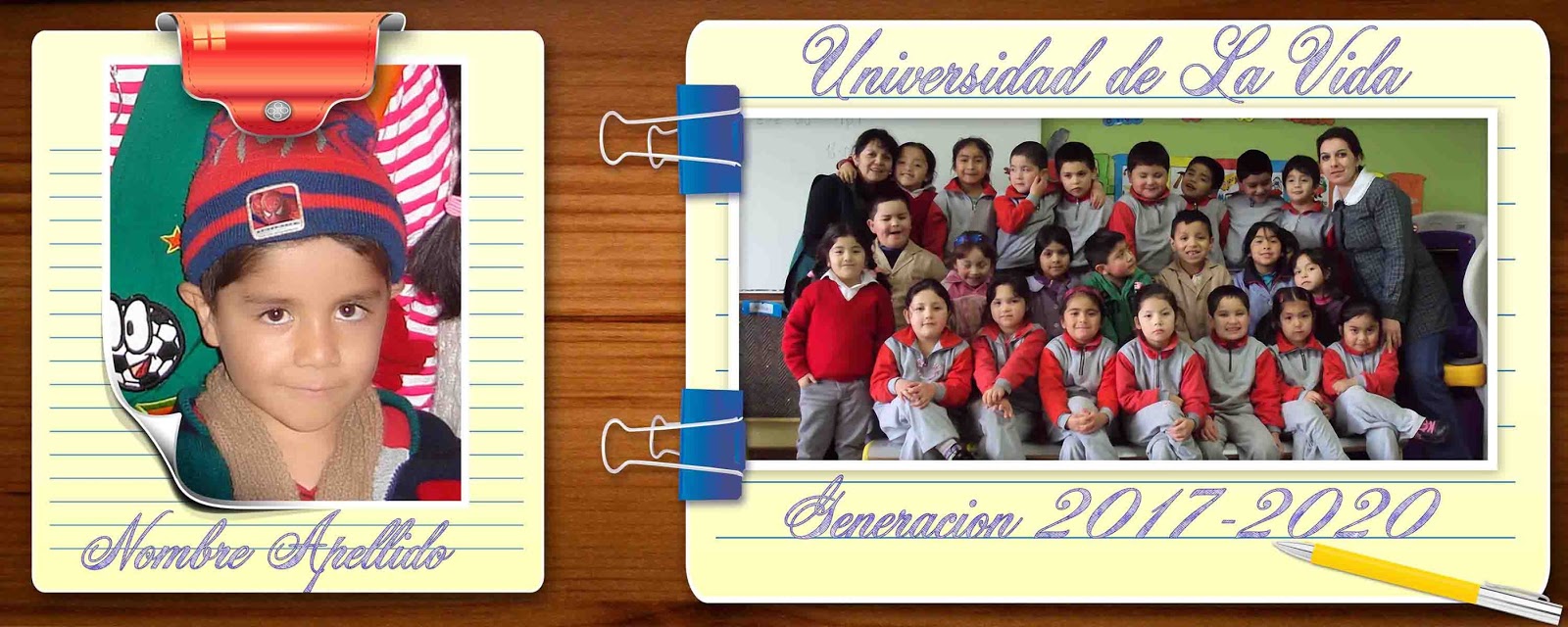 Plantilla en psd para fotografía escolar. Medida 20 X 8 pulgadas y resolución de 300 dpi's. La plantilla cuenta con 10 capas, ademas el texto es editable.