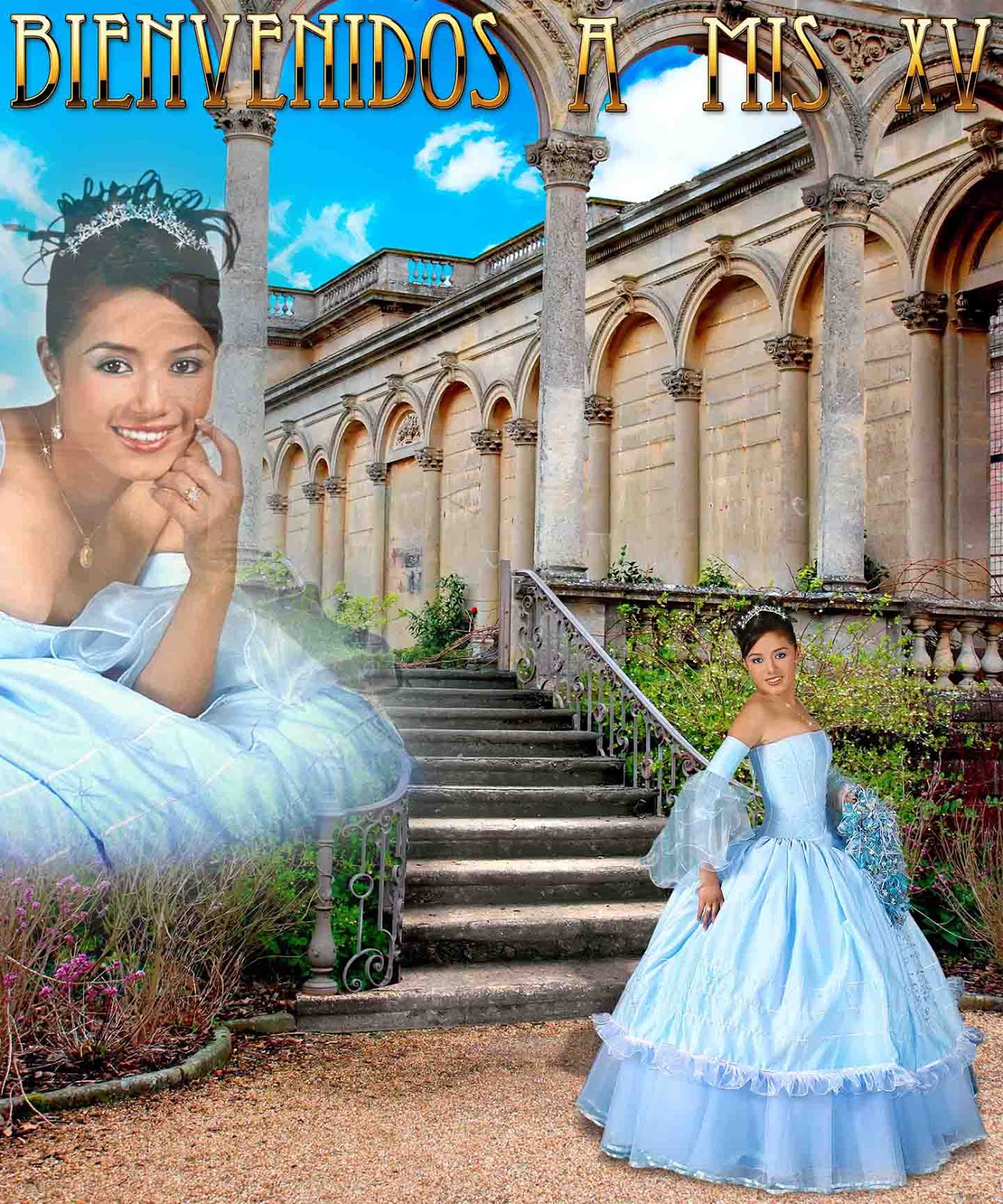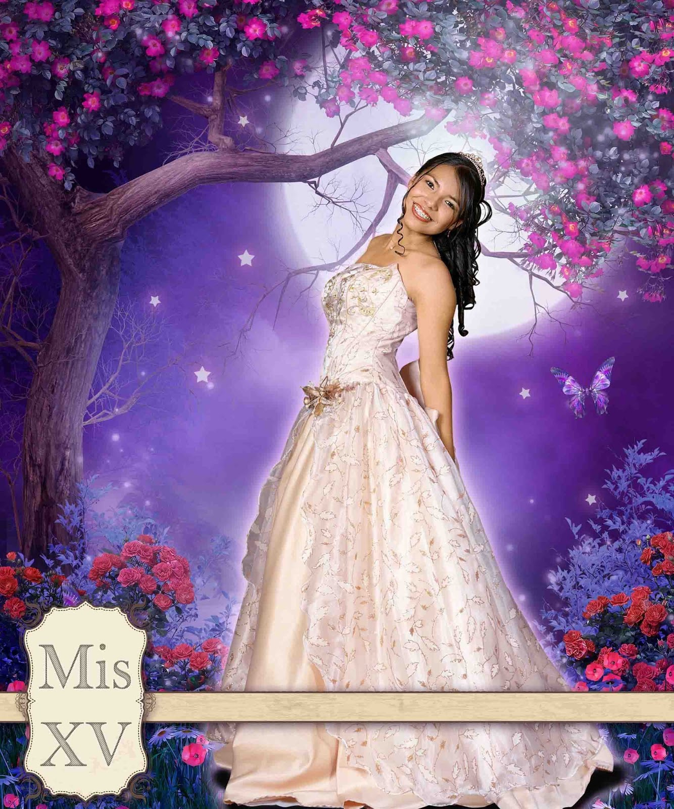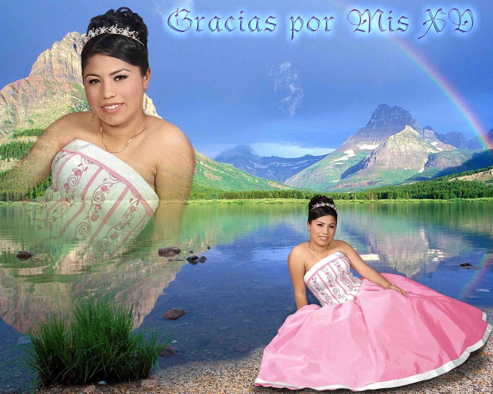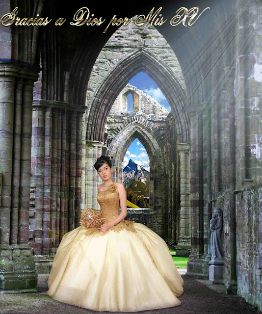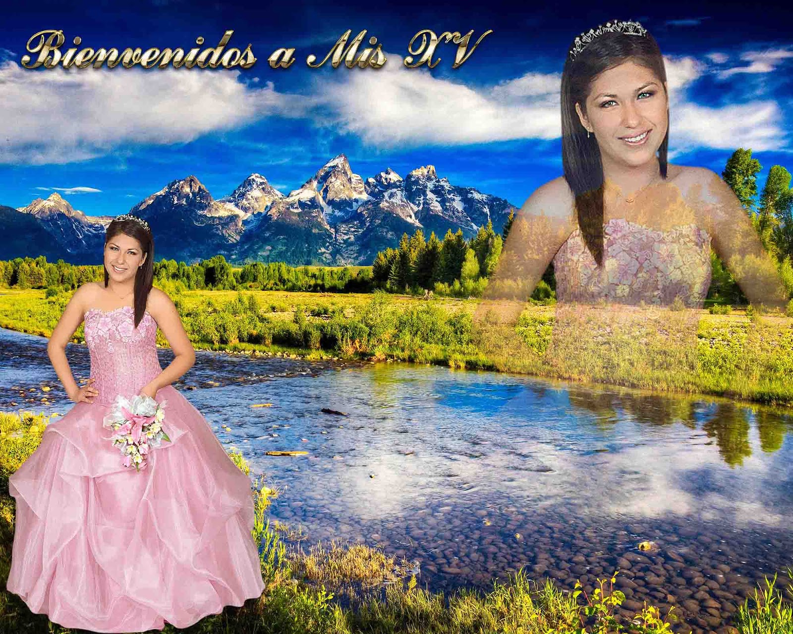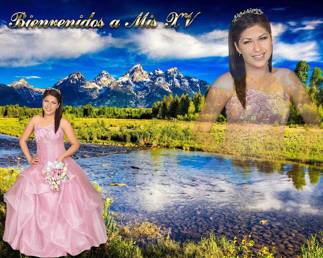 Plantilla para Photoshop para fotografía de firmas o de bienvenida para XV años. Medida 20 X 16 pulgadas y resolución de 200 dpi's. La mascarilla contiene 4 capas, incluyendo 2 paisajes mas ademas del que mostramos aquí.
