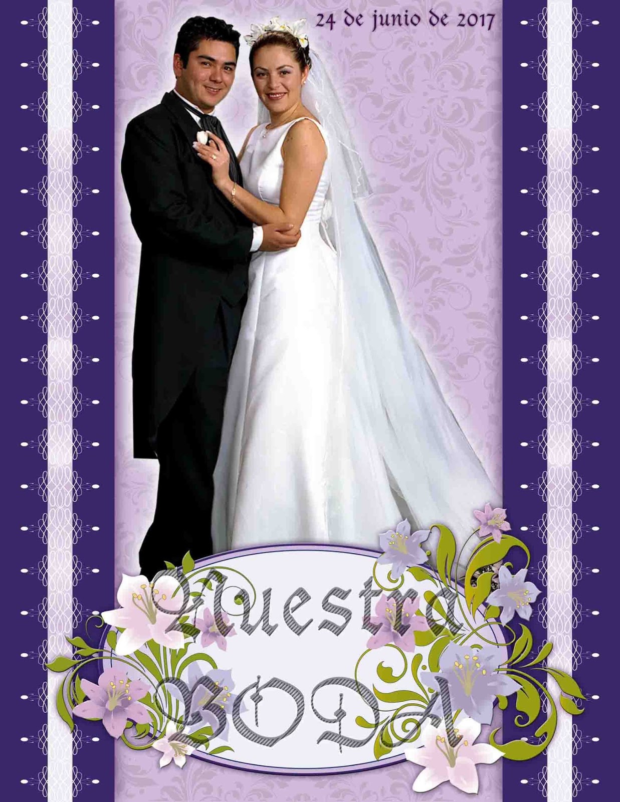 Plantilla multi propósito para boda. Te puede servir para foto invitación, foto de firmas, portada de DVD o para diseñar una lona de bienvenida. Medida carta (8.5 X 11 pulgadas) y resolución fotográfica. La mascarilla contiene 5 capas y es editable en Photoshop.