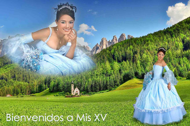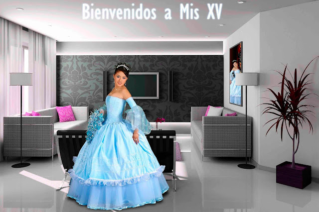 Plantilla para foto de bienvenida para XV años,boda o presentación. Medida aproximada de 16 X 24 pulgadas y resolución de 200 dpi's. La mascarilla consta de solo 3 capas con todo y texto.
