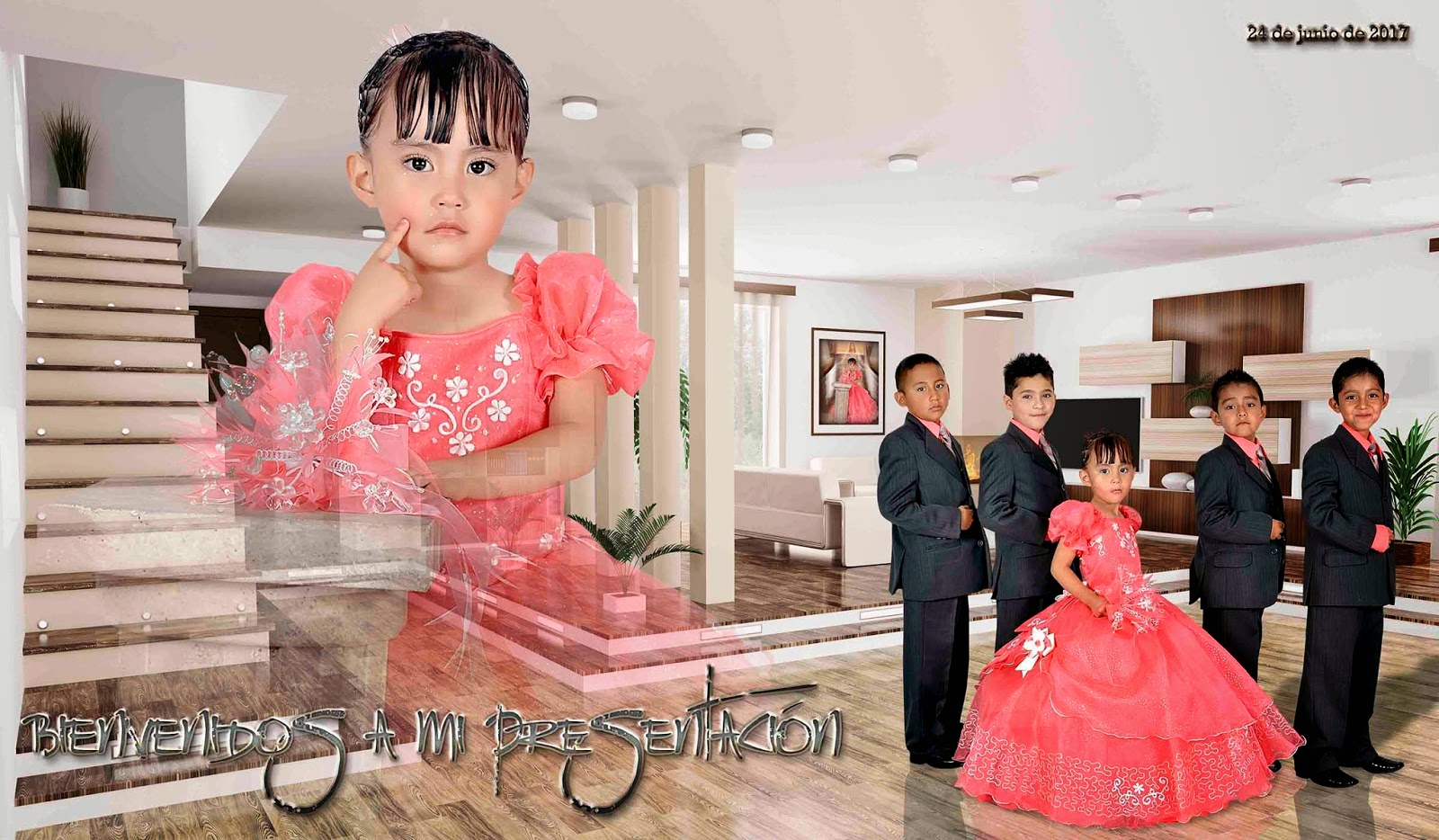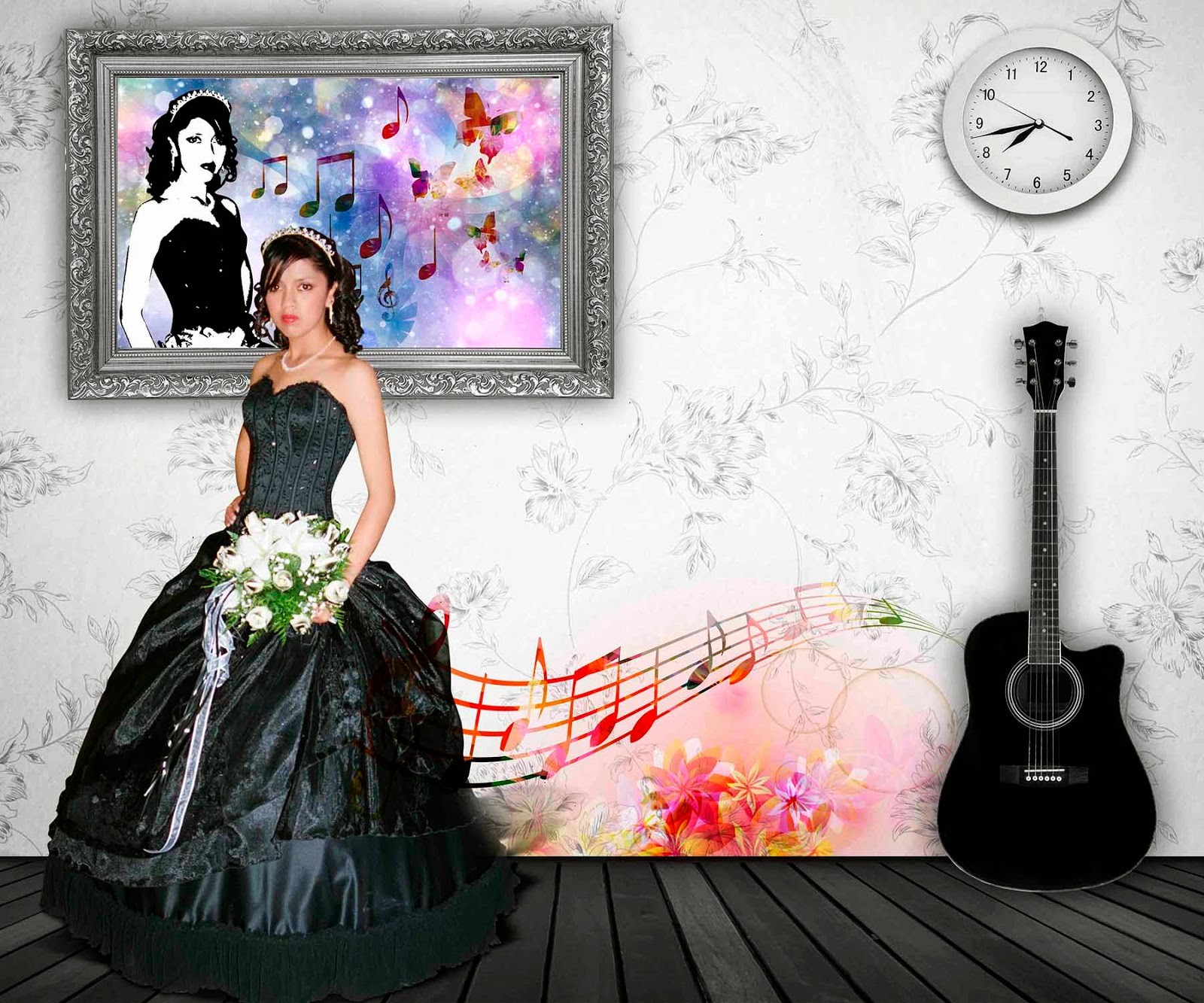 Plantilla para tus fotomontajes. Tiene una medida de 16 X 24 con resolución de 200 dpi's. La mascarilla cuenta con 4 capas, una de ellas es una mariposa de filigrana con diamantes en lugar de la pleca rosa que ves aquí. Puedes editarla en Photoshop y la pleca en Illustrator si fuera necesario. El diseño te puede ser útil para la foto de recepción de tu evento.